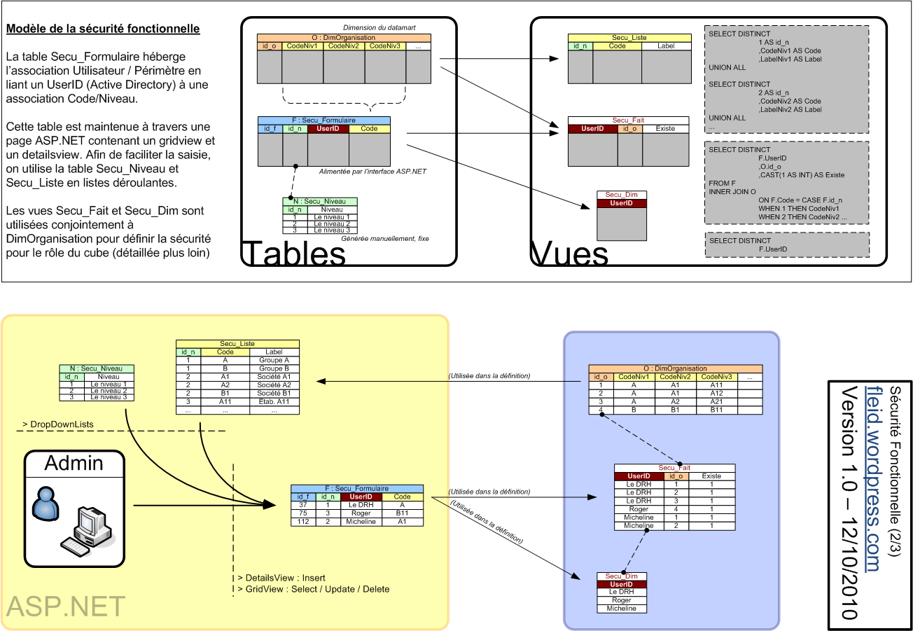 Concernant la sécurité fonctionnelle, la sécurité à la ligne, on peut utiliser un jeu de tables comme cela pour l’implémenter: