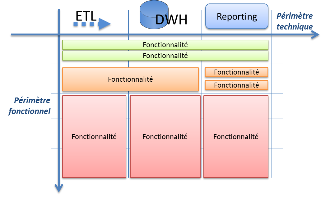Ce qui est important, c’est qu’il faut découper son projet selon l’axe métier, le périmètre fonctionnel, et pas selon l’axe technologique. Il faut faire du bout en bout (de l’ETL au reporting) en traitant un sujet simple, plutôt que de faire tout l’ETL, avant de passer à une autre brique :