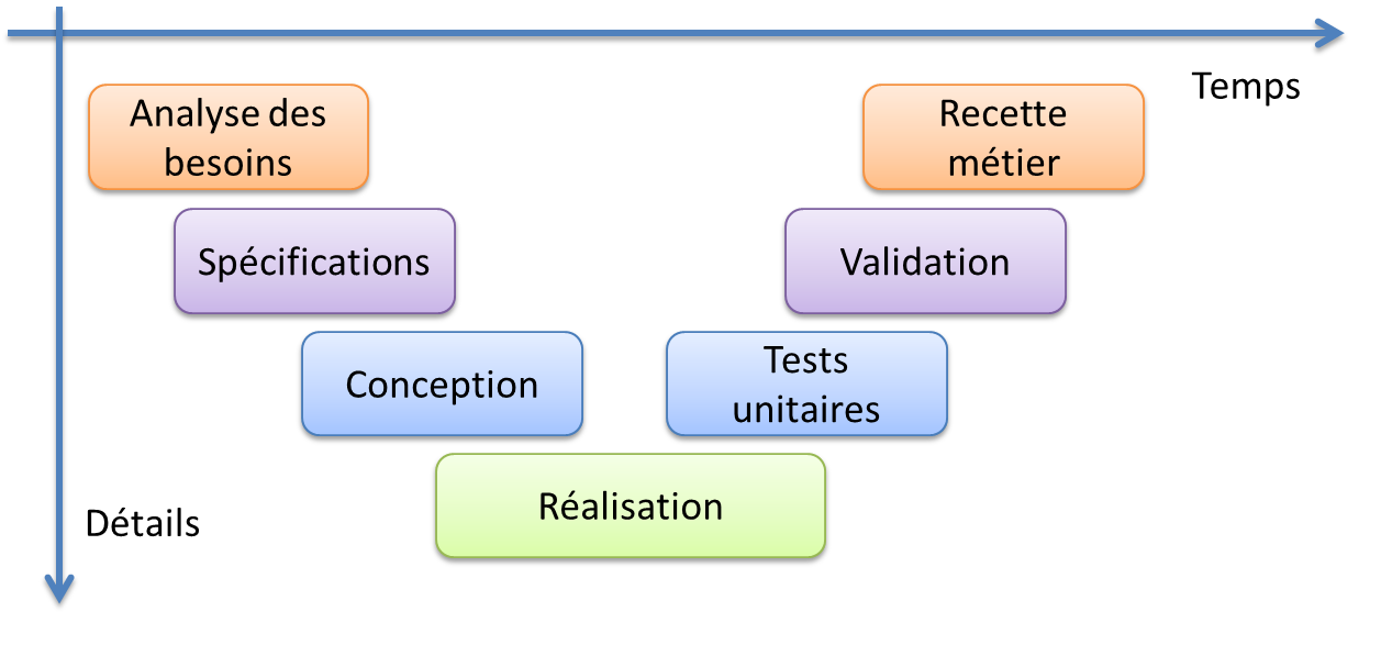 Avec les méthodes agiles, on est dans la première possibilité. Le cycle en V correspond à la seconde.